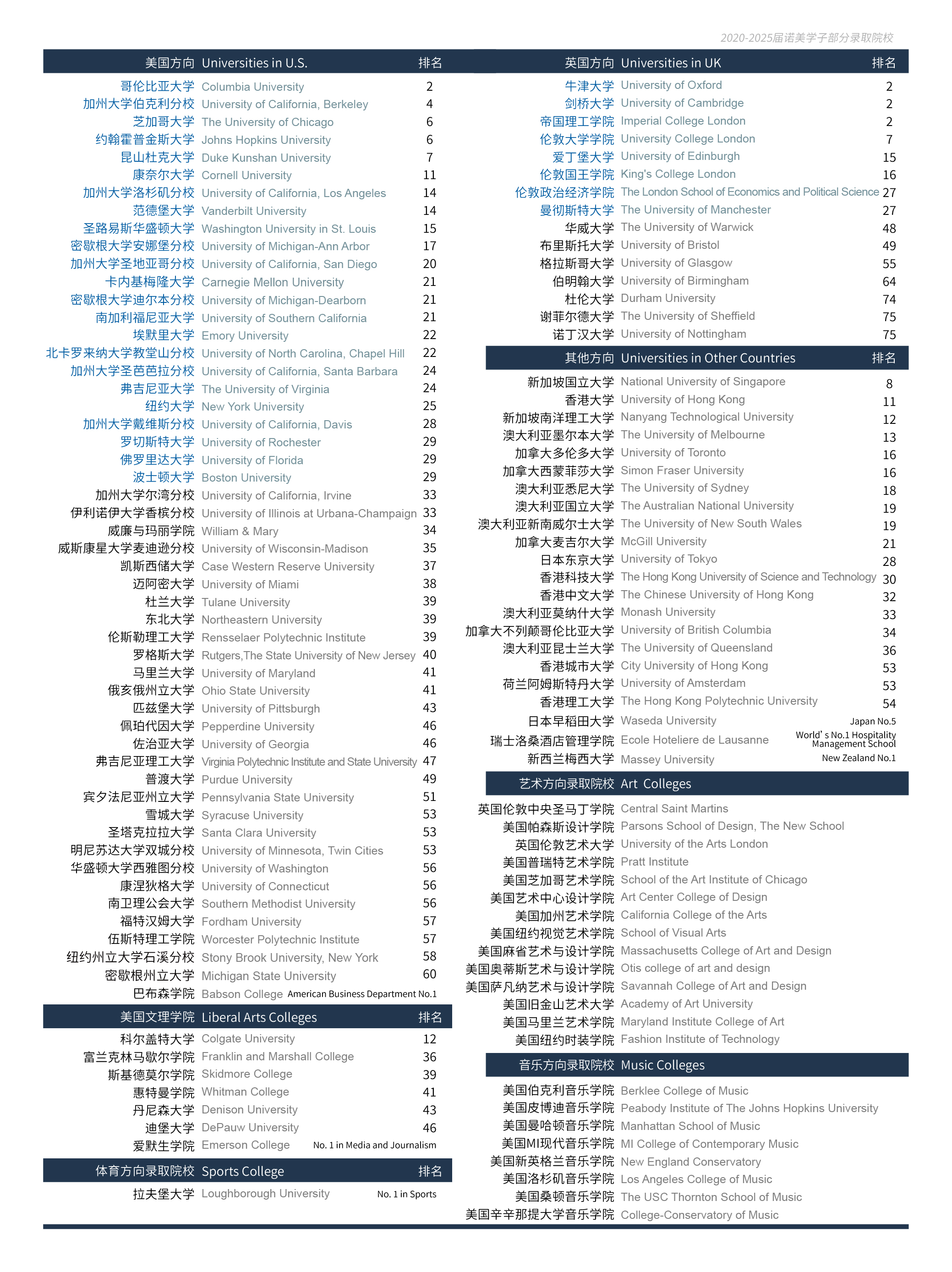 自建校以来,诺美已成功培养出六届优秀毕业生,在升学领域持续取得卓越突破。截至目前,我们已实现87%的毕业生收获全球或全美Top 30院校录取,97%的学生跻身Top 50,并保持100%全员进入世界百强大学的优异成绩。
