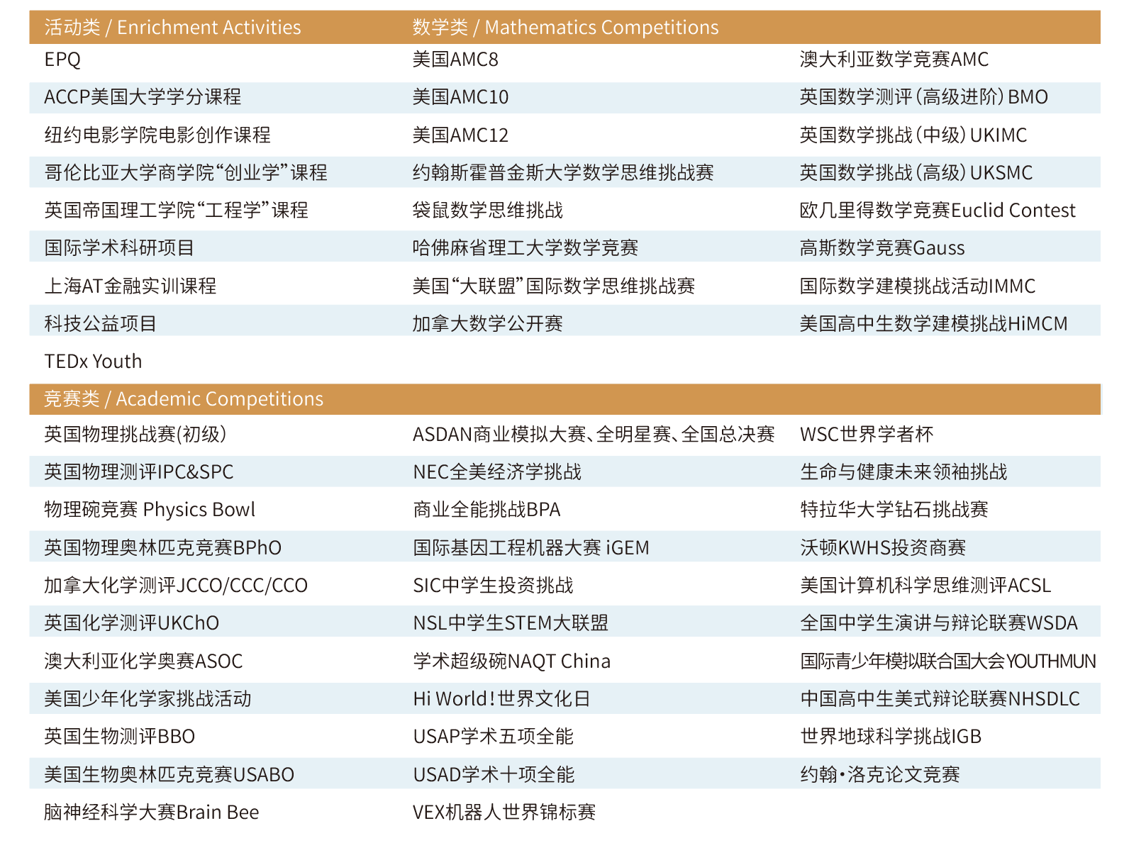 上海诺美学校针对不同专业的学生每年提供70+国际竞赛,以及竞赛规划和竞赛前课程指导,助力诺美学子在国际竞赛中不断取得突破,并为学生全面搭建综合素质培养的学习空间及发展平台,锻炼学生的创新思维、领袖气质与团队合作,从而实现全球胜任力发展,成功升入世界顶尖院校。