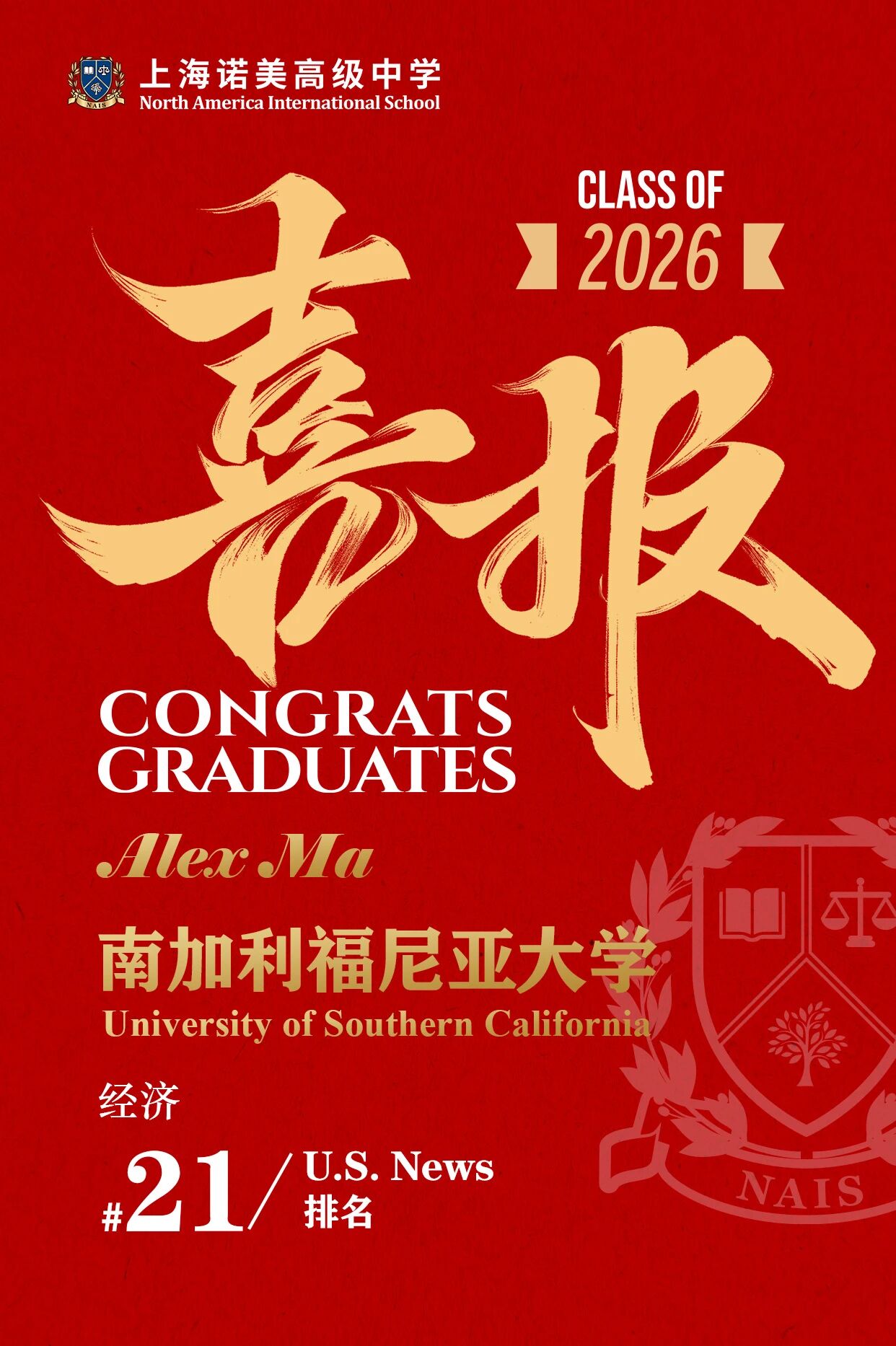?? Alex Ma 同学荣获南加利福尼亚大学经济专业录取offer!