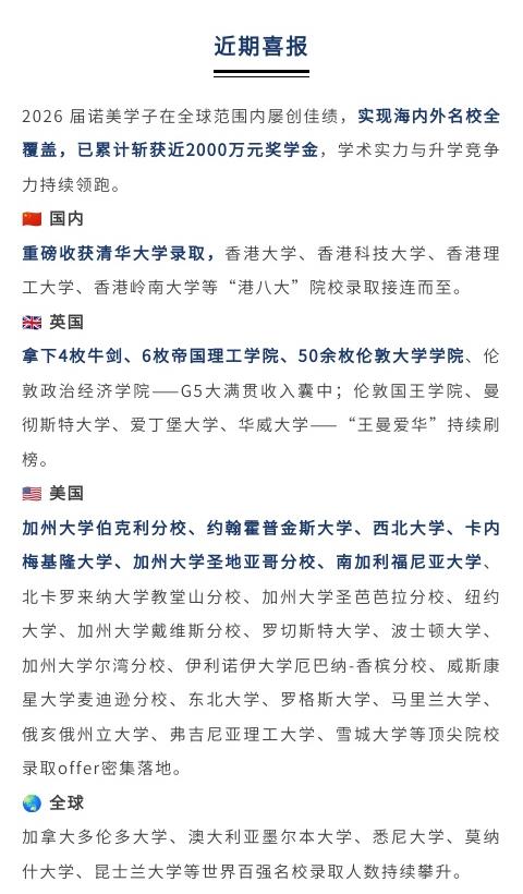 升学喜报 | 帝国理工、UCSD、UCSB、港理工!诺美升学战绩持续刷新!