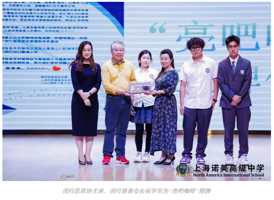 我发现学校小卖部人流量巨大,尤其是饮品,供不应求。我就想,能不能做个咖啡吧,升华一下?在诺美老师的支持下,我联系到了闵行区政协委员会,邀请他们来校交流。当我详细陈述完提案后,他们很乐意挂牌支持我去做这件事。我作为创始人开设了“亮吧咖啡”,我们采用云南保山的小粒咖啡助农,并将部分利润捐赠给闵行区政协基金会——让每一杯咖啡承载助农与公益的双重温度。